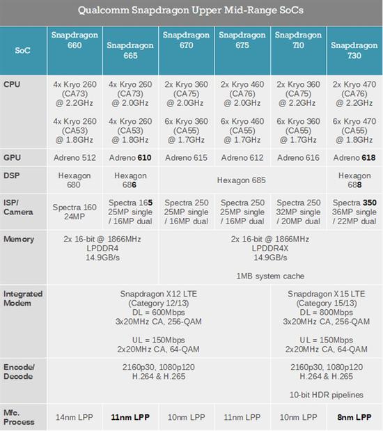 驍龍730當(dāng)然是準(zhǔn)旗艦平臺(tái)驍龍710的升級版,采用三星8nm LPP工藝制造,這還是高通的第一次。