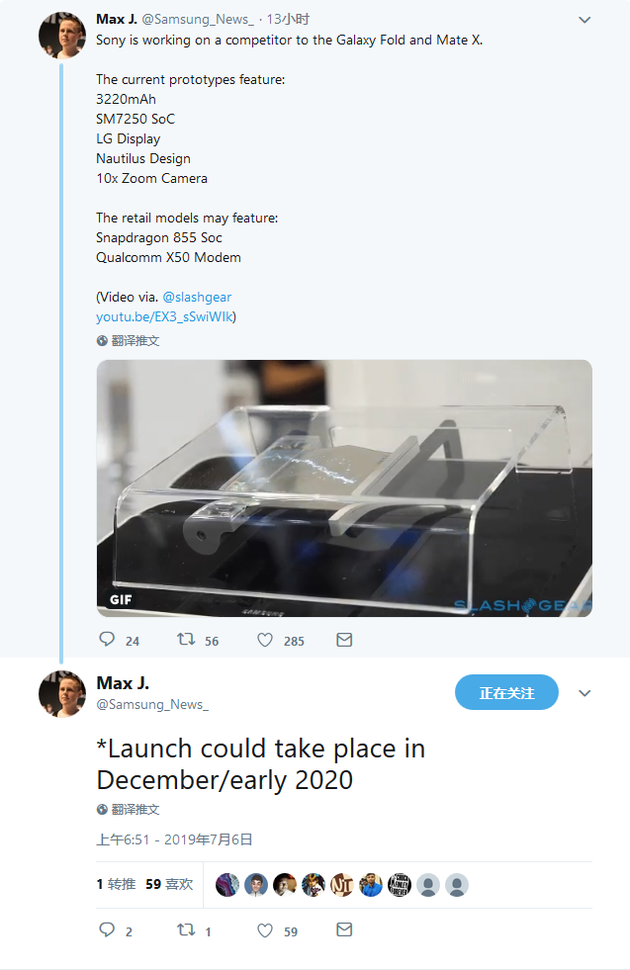 在推文中他表示這款卷曲設(shè)備會內(nèi)置3220mAh容量電池,內(nèi)置高通驍龍SM7250 SoC,采用LG Display,鸚鵡螺(Nautilus)設(shè)計(jì),支持10倍變焦。零售型號可能配備更新的Snapdragon 855 Soc處理器和Qualcomm X50調(diào)制解調(diào)器。